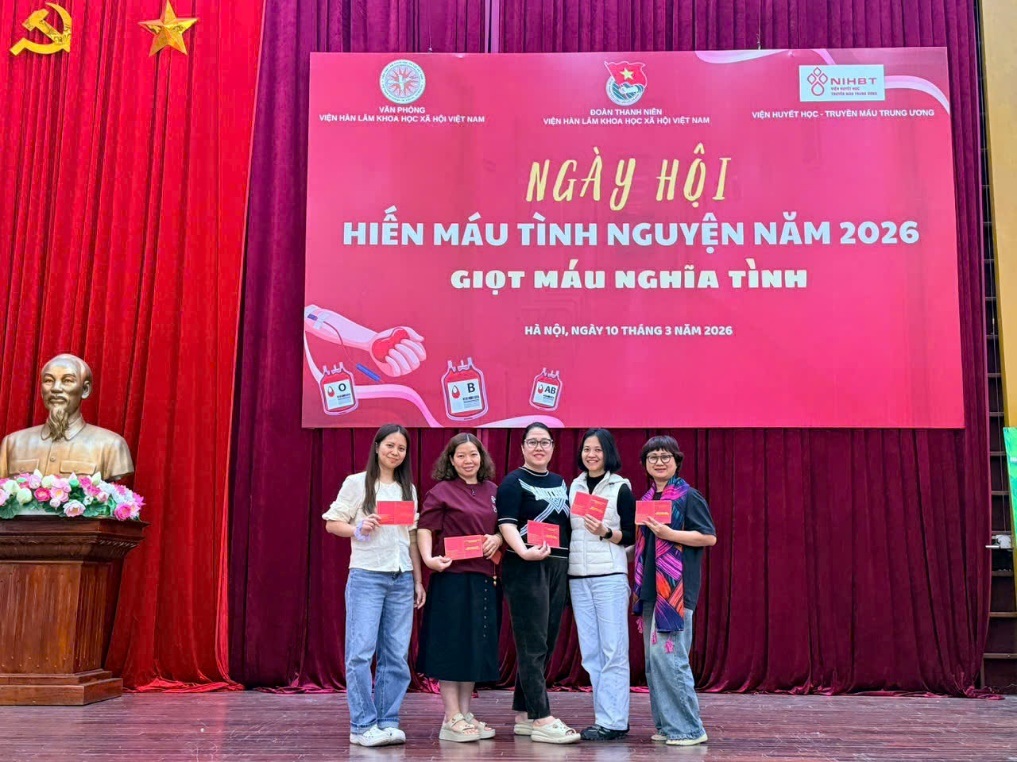 Hướng tới kỷ niệm 95 năm Ngày thành lập Đoàn TNCS Hồ Chí Minh (26/3/1931 – 26/3/2026), ngày 10/3/2026, tại trụ sở Viện Hàn lâm Khoa học xã hội Việt Nam, Đoàn thanh niên Viện Hàn lâm đã phối hợp với Văn phòng Viện Hàn lâm và Viện Huyết học và Truyền máu Trung ương tổ chức Chương trình hiến máu tình nguyện năm 2026 với thông điệp đầy nhân văn: “Giọt máu nghĩa tình”.