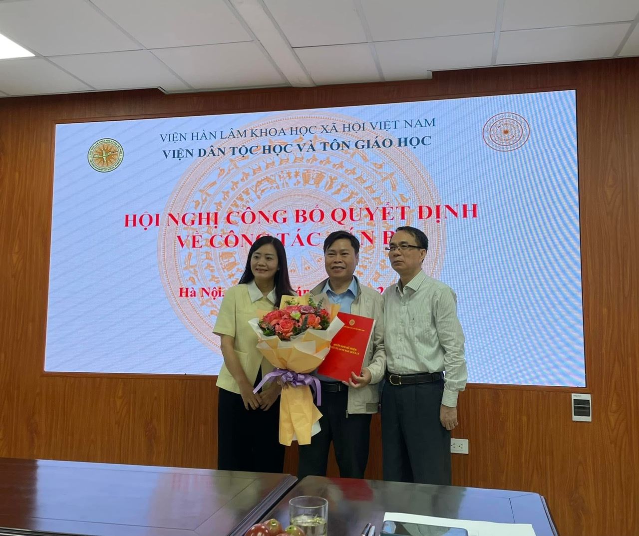 PGS.TS. Nguyễn Văn Minh – Viện trưởng Viện Dân tộc học và Tôn giáo học; TS. Bùi Thị Bích Lan – Phó Viện trưởng đã trao Quyết định bổ nhiệm và tặng hoa chúc mừng các cá nhân được giao nhiệm vụ mới. Trong không khí trang trọng và ấm áp, đại diện các phòng có viên chức được bổ nhiệm cũng đã tặng hoa chúc mừng, đồng thời chụp ảnh lưu niệm, ghi lại dấu mốc ý nghĩa trong quá trình công tác của mỗi cá nhân.